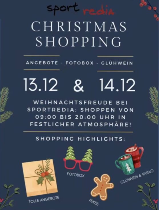 Christmas Shopping am 13. und 14. Dezember 2024 von 9:00 bis 20:00 Uhr in festlicher Atmosphäre bei Sport Redia.