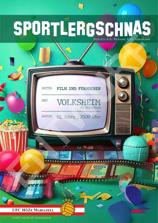 Am Samstag, 1. März 2025 findet der Sportlergschnas unter dem Motto „Film und Fernsehen“ im Volksheim St. Sebastian statt.