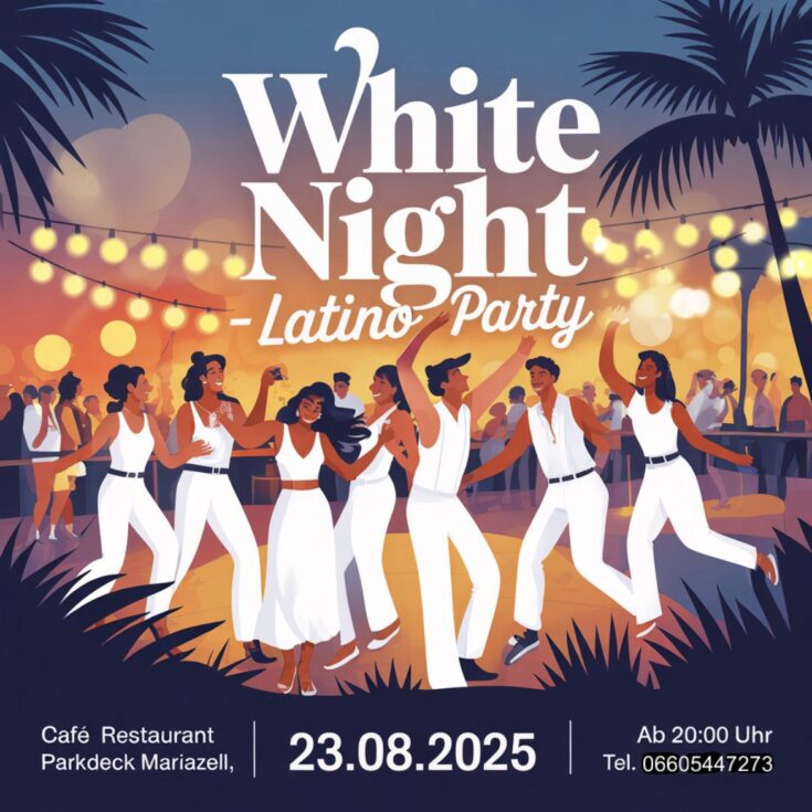 Das Café Restaurant Parkdeck lädt am 23. August 2025 ab 20:00 Uhr zur White Night – Latino Party.